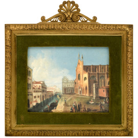 1) Chiesa dei santi Giovanni e Paolo e la Scuola di San Marco, stampa. secolo, cm 11,5x14,5, entro cornice; 2) Santa Maria della Salute, acquerello, cm 8,5x14, entro cornice