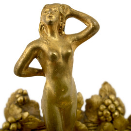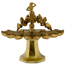 Lucerna a 6 fuochi in bronzo dorato arricchita nella decorazione da piccola scultura di Venere e delicato festone a tralci d'uva, fine del XIX - inizi del XX secolo, cm 20x22x11, (difetti).