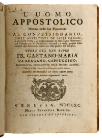 L'uomo apostolico istruito nella sua vocazione al confessionario. Opera del rev. padre fr. Gaetano-Maria da Bergamo, cappuccino, 1790.