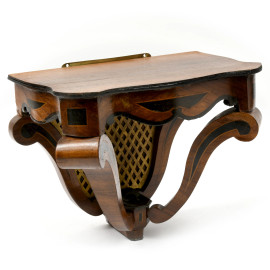 Presenta un ripiano sagomato e una decorazione traforata con giglia in metallo dorato sul fondo.