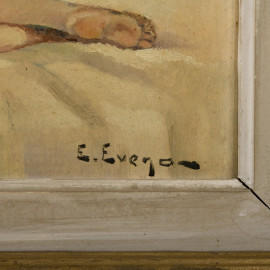 Nudo femminile, olio su tavoletta, XIX secolo, cm 22,5x34,5 entro cornice, firmato in basso a destra, (difetti)