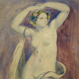 Nudo femminile, stampa acquerellata, XX secolo, cm 29,5x22 entro cornice, (difetti) Presenza di gore e tarli