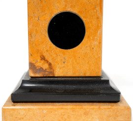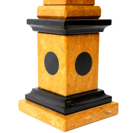 Obelisco decorativo in marmo giallo Siena e marmo nero. XIX secolo, cm 33x6,5x6,5 (difetti)