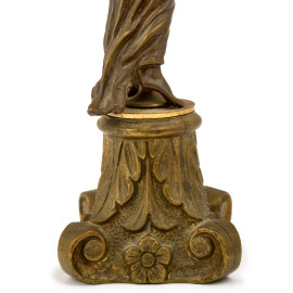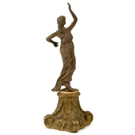 Odalisca in bronzo poggiante su capitello capovolto di ispirazione classica, inizi del XX secolo, cm 17x6x6, (difetti)