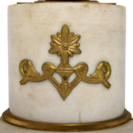 Montato su una base in marmo bianco decorata con applicazioni in bronzo dorato di gusto neoclassico