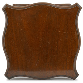 Piccola libreria girevole o portariviste in legno di mogano con piano a profilo mosso e divisori vericali. Base girevole. XX secolo, cm 38,5x35x35, (difetti e segni di utilizzo)