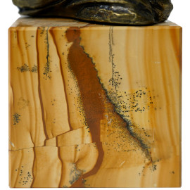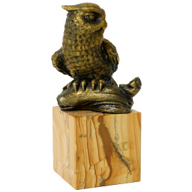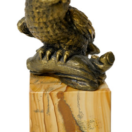 Piccola scultura di gufo in metallo dorato con base a finto marmo, altezza cm 12, XX secolo