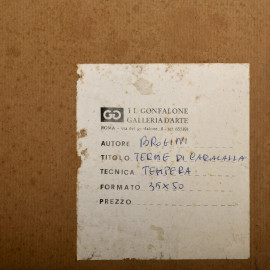 Pittore della seconda metà del XX secolo, Terme di caracalla, tecnica mista su carta, cm 46,5x62 compreso passepartout, entro cornice (difetti)