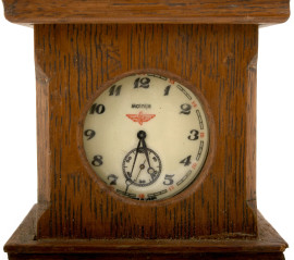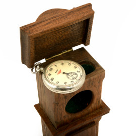 Portaorologio in legno a guisa di pendolo contenente orologio da taschino Molnija, XX secolo, (difetti, da revisionare) altezza cm 28