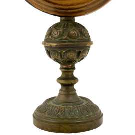 Portareliquie in legno laccato con base in bronzo. XX secolo, cm 24x12, (difetti)