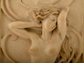 Rilievo in resina raffigurante ninfa Liberty, XX secolo, cm 44x17, (difetti)