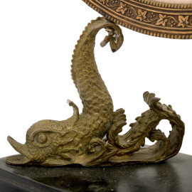 Fiocco apicale in bronzo. Base in bronzo brunito con due delfini mitologici a supporto dell'opera.