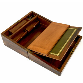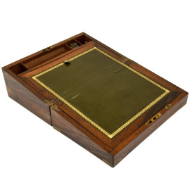 Scrittoio da viaggio con scatola in mogano e finiture in ottone. Inghilterra, XIX secolo. Misure scatola chiusa cm 15x35x22,5, (difetti)