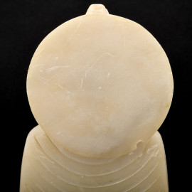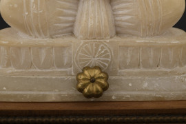 Scultura di Buddah in pietra saponaria finemente intagliata. Birmania, XX secolo, cm 25x20x10, (difetti)