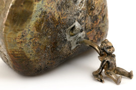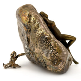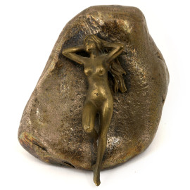 Scultura di donna raffigurante nudo di donna firmata "Torrini". Applicazione non pertinente di piccolo putto nella parte inferiore. XX secolo, cm 20x20x7, (difetti)