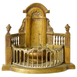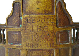 Scultura in bronzo dorato della fine del XIX secolo raffigurante la fontana del Manneken Pis. Al retro iscrizione "Deposè JBC 1898 Bruxelles" cm 12x12x6