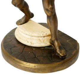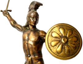Scultura in bronzo patinato ad imitazione di guerriero greco, XX secolo cm 35x32x17, (difetti)