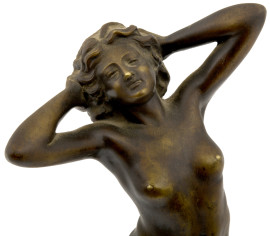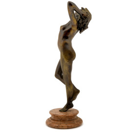Scultura in bronzo patinato raffigurante nudo di donna su base in marmo, inizi del XX secolo, cm 38x11,5