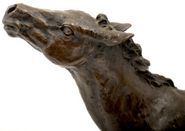 Scultura in bronzo raffigurante cavallo in posizione dinamica. XX secolo, cm 24x23x10