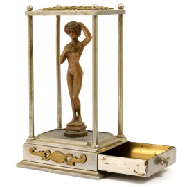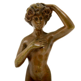 Scultura in bronzo raffigurante figura femminile nuda in posa classica. La figura è contenuta all'interno di una struttura a baldacchino con fregi in bronzo dorato a rilievo. Fine del XIX - inizi del XX secolo, cm 13x7x5, (difetti)