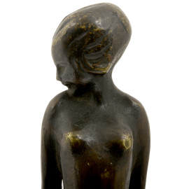 Scultura in bronzo raffigurante nudo di giovane donna, su base in malachite, inizi del XX secolo, cm 24x9x7, (difetti)