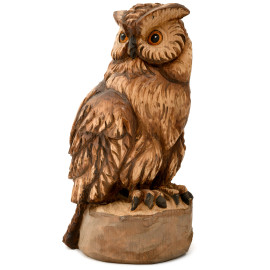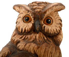 Scultura in legno raffigurante gufo, XX secolo, (difetti), cm 23x12,5x8,5