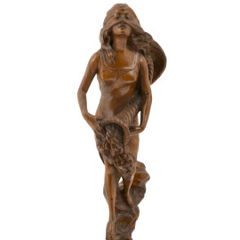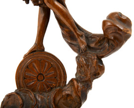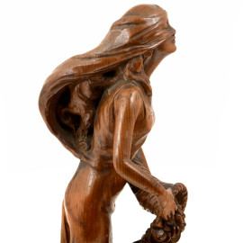 Scultura in legno raffigurante la Fortuna, primi decenni del XX secolo. cm 40x16, (difetti)