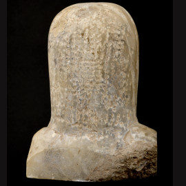 Scultura in pietra raffigurante nobile donna mediorentale con panneggio sul capo e ricco ornamento su capelli e alla fronte. XX secolo, cm 24x13x9, (difetti).