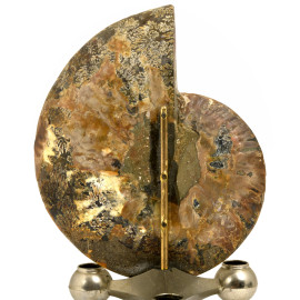Sezione di ammonite (cm 15) montata su supporto in metallo argentato (cm 6,5)