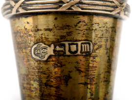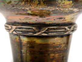 Vasetto in argento Goldsmith & Silversmith, Londra XX secolo, cm 13,5x7. Peso gr 93, (difetti)
