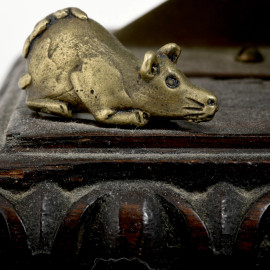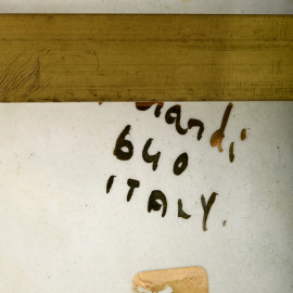 Interno smaltato in rosa. Base in legno con due piccole sculture in casi agli angoli.