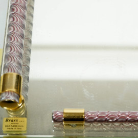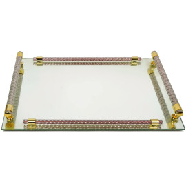 Vassoio Dimart Milano placcato in oro 24 carati e ottone con base a specchio. Anni Ottanta del XX secolo, cm 48x32x5,5, (difetti)