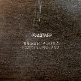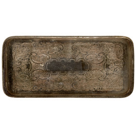 Vassoio rettangolare Falstaff Silver Plated decorato con ricco ornato inciso e a rilievo, Inghilterra XX secolo, cm 3x41x19 , (difetti)