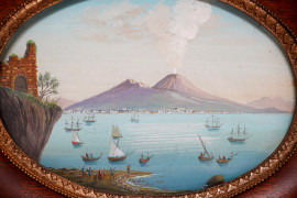 Veduta del Vesuvio, XX secolo, guaches su carta, cm 13,5x18,5 entro cornice