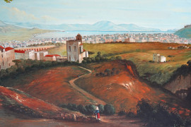 Veduta di Napoli dalla Conocchia, XX secolo, olio su tela, cm 71x83 entro cornice. Firmato in basso a destra