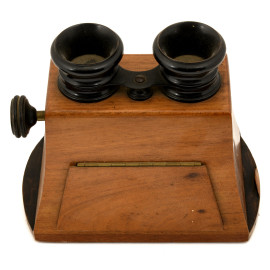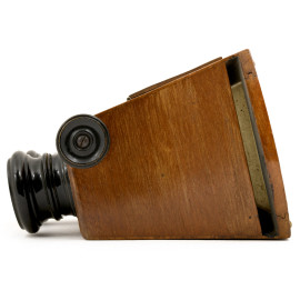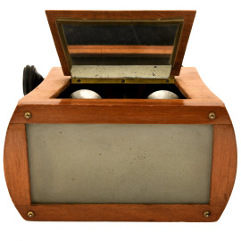 Visore stereoscopico in legno, inizi del XX secolo, cm 16x18x11, (difetti, rotture, da revisionare)