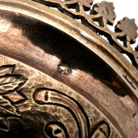 Acquasantiera in argento decorato a sbalzo a motivi floreali e vegetali, XIX-XX secolo, altezza cm 10,5, diametro cm 7, gr. 100