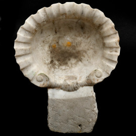 Acquasantiera in marmo, XX secolo, cm 10x37x29 , (difetti)