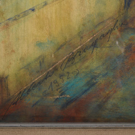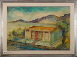 Alberto Bragaglia (1896 – 1985), Donne nel vicolo (recto) - Paesaggio (verso), tecnica mista su carta, cm 68x98, firmato e datato "1952", entro cornice