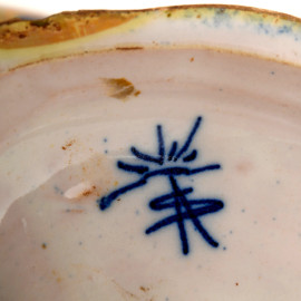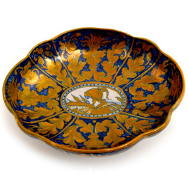 Alzata a lustro metallico a profilo sagomato decorato con profilo di militare e racemi, Ceramiche Santarelli del XX secolo, cm 12x26,5x23, (difetti)