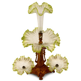 Alzata liberty in metallo dorato e vetro, XX secolo, altezza cm 53, (difetti)