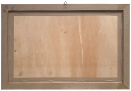 Artista dei primi del Novecento Scorcio marino con scogli e imbarcazione, raffinato dipinto ad olio su tavola, cm 30x50, con cornice
