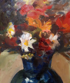 Artista dei primi del Novecento Vaso con fiori, olio su tavola, cm 60x37, con cornice, firmato