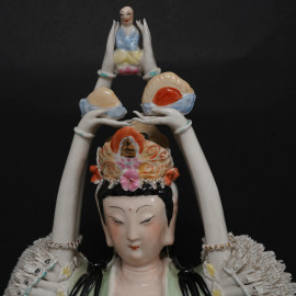 Avalokiteśvara in porcellana policroma, XX secolo, cm 57, (difetti)