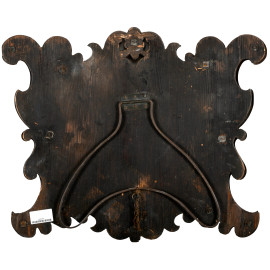 Cornice riccamente intagliata a volute