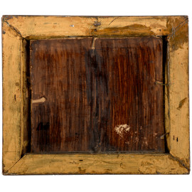 Battaglia, olio su compensato, XX secolo, cm 13x15,5,entro cornice, (difetti)