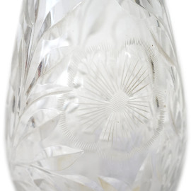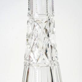 Bottiglia in vetro molato e controtagliato a motivi floreali e vegetali, XX secolo, cm 35, (difetti)