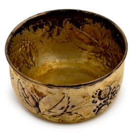 Bowl in argento con foglie a sbalzo, XX secolo, altezza cm 6,5, diametro cm 12, gr. 120, (difetti)
