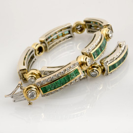 Bracciale in oro bianco 750 con brillanti e smeraldi, peso gr 44,84, lunghezza cm 22, accompagnato da certificato gemmologico