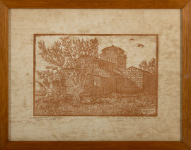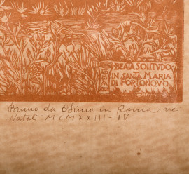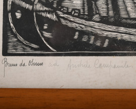 Bruno da Osimo (1888-1962), lotto di due xilografie: Beata Solitudo in Santa Maria di Portonovo, xilografia, cm 29x38, dedicata firmata e datata "Roma nei natali MCMXXIII-IV"; Vascello, xilografia, firmata, dedicata e datata "Roma 2 novembre 1921". Entro